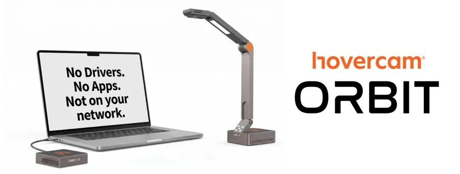 At HoverCam, we took a fundamentally different approach. Our Orbit wireless doc cam encapsulates all TCP/IP networking and wireless logic inside an external dongle, connecting to the host computer only through a simple USB or HDMI cable. No proprietary drivers. No network-based apps. This wired-wireless hybrid architecture creates a true “fire gap” that keeps our wireless communication completely isolated from your network and your devices.