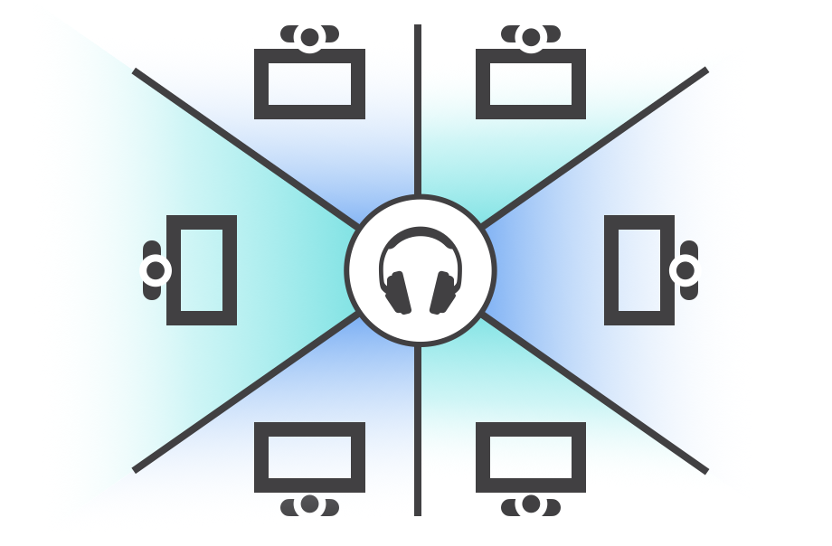 Intelligent zoning lets teacher listen in to different parts of the classroom and monitor group discussions.